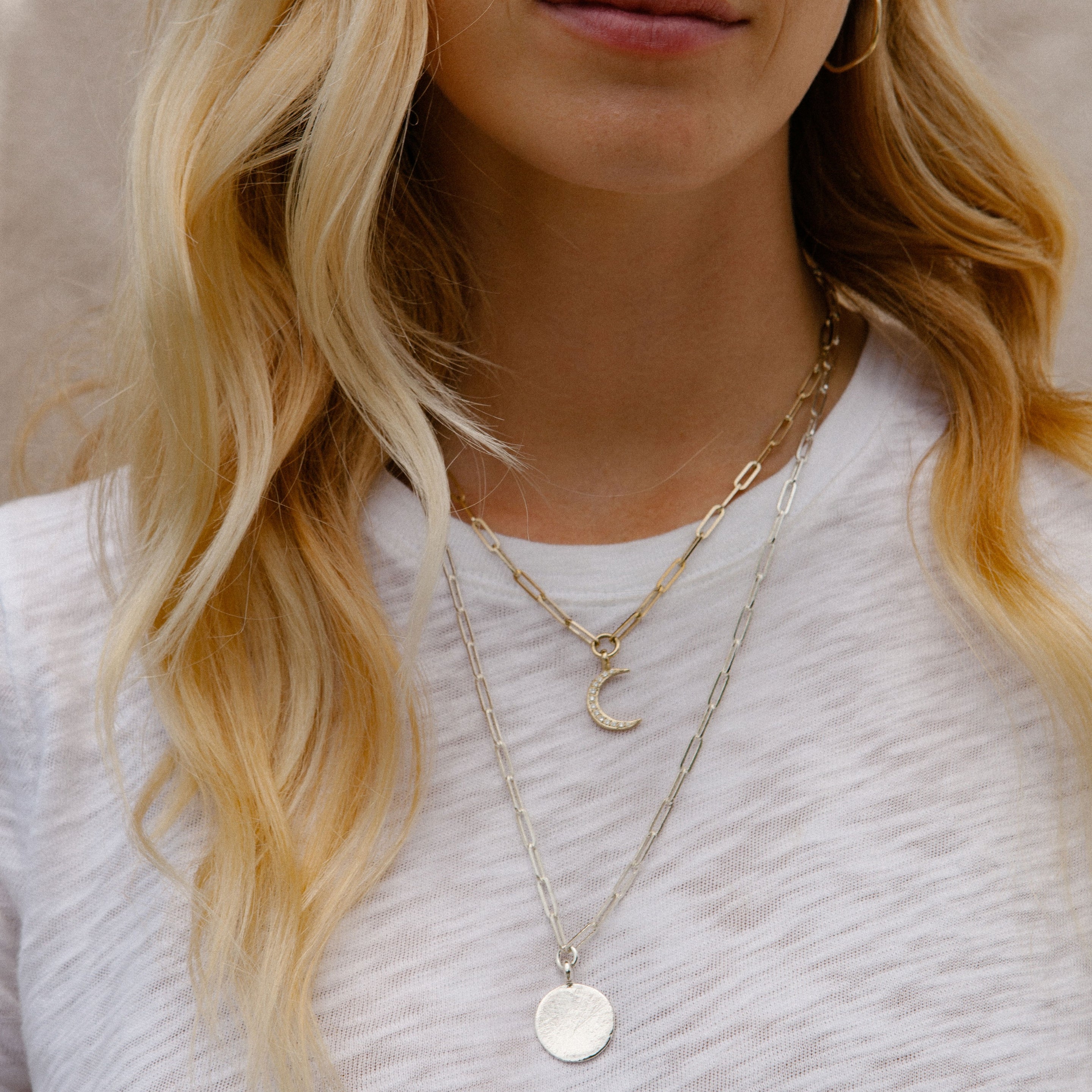 The Large Moon Trace Chain Necklace is made using 100% recycled solid sterling silver. The Trace Chain looks great worn alone or layered with other DD necklaces to create your own unique look!