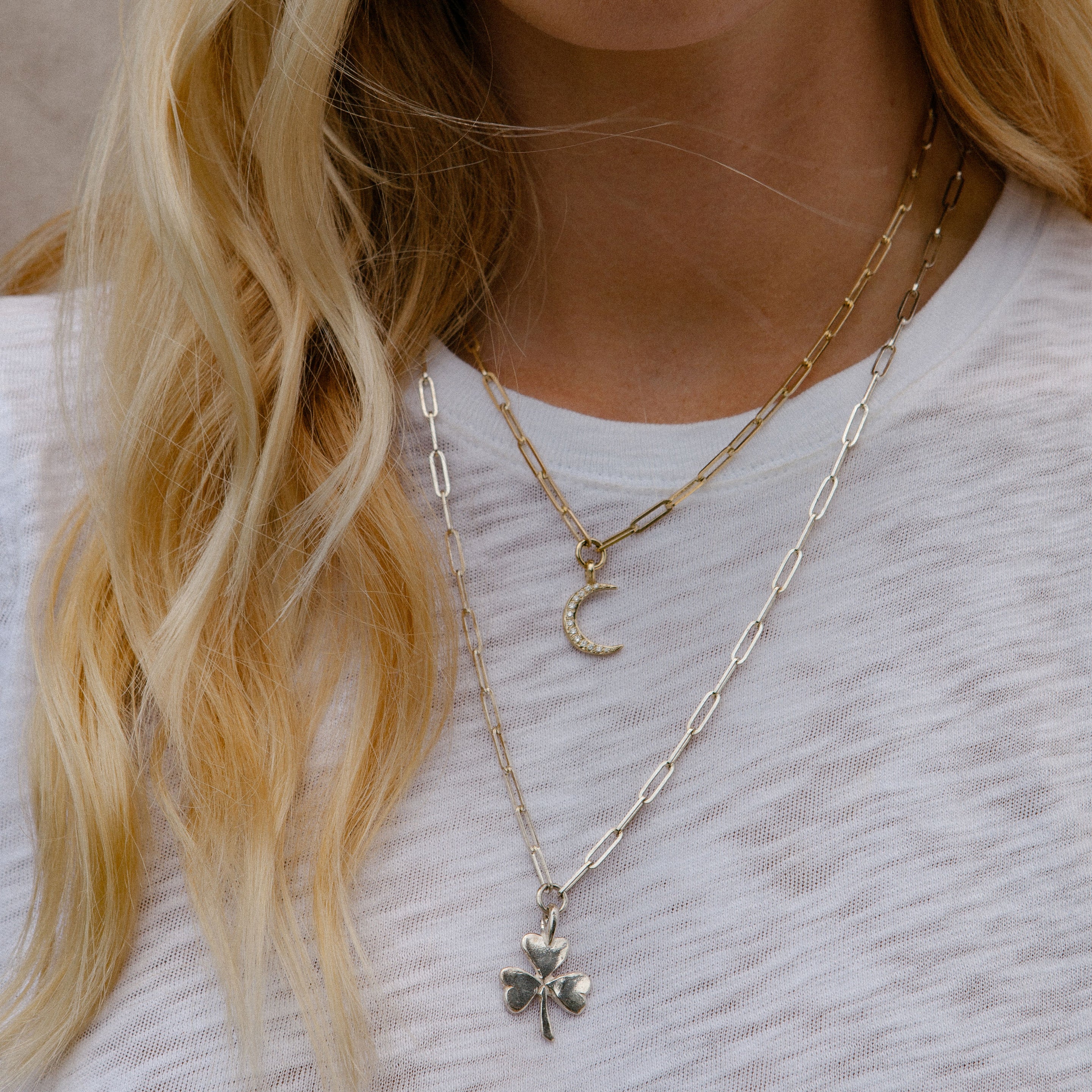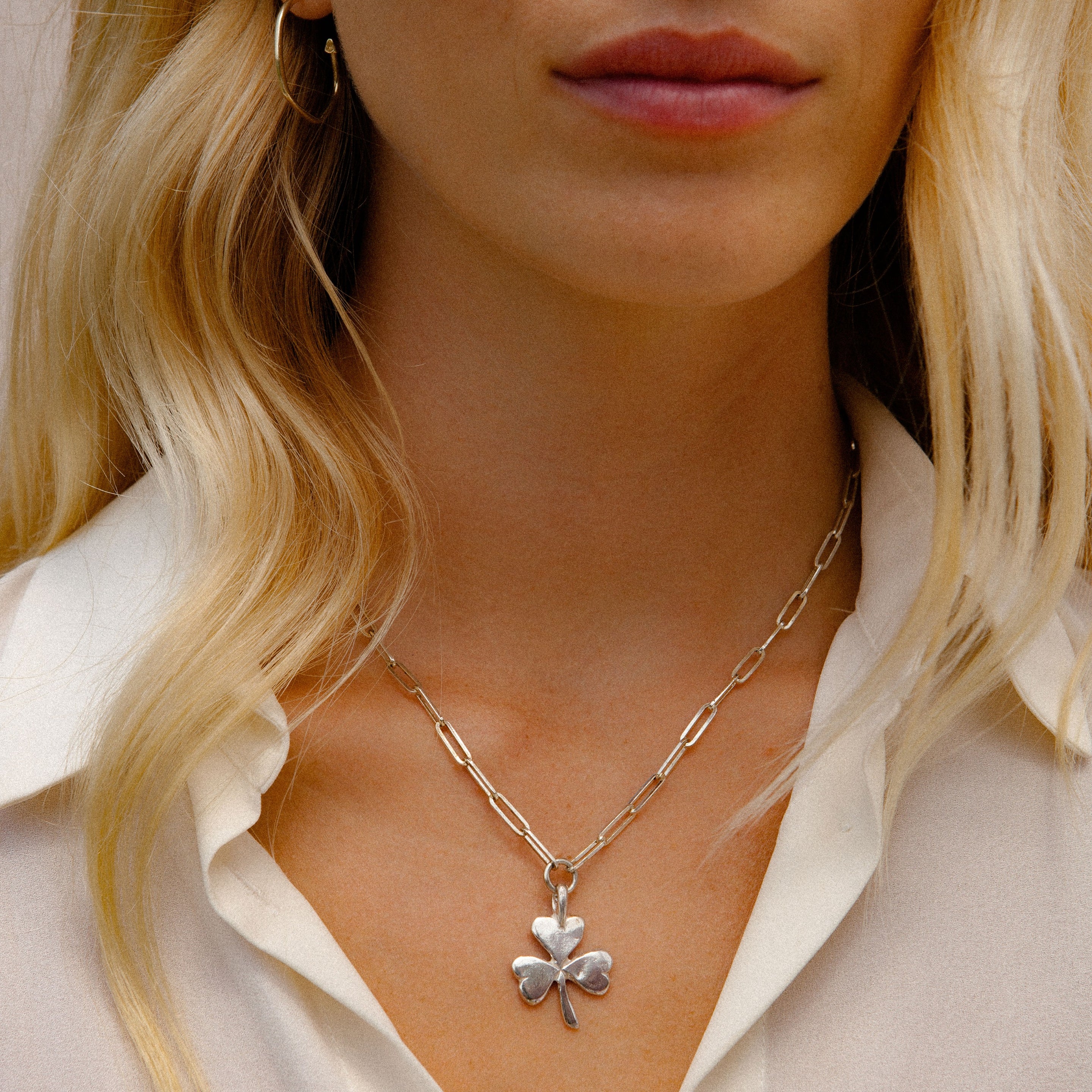 The Large Shamrock Trace Chain Necklace is made using 100% recycled solid sterling silver. The Trace Chain looks great worn alone or layered with other DD necklaces to create your own unique look!