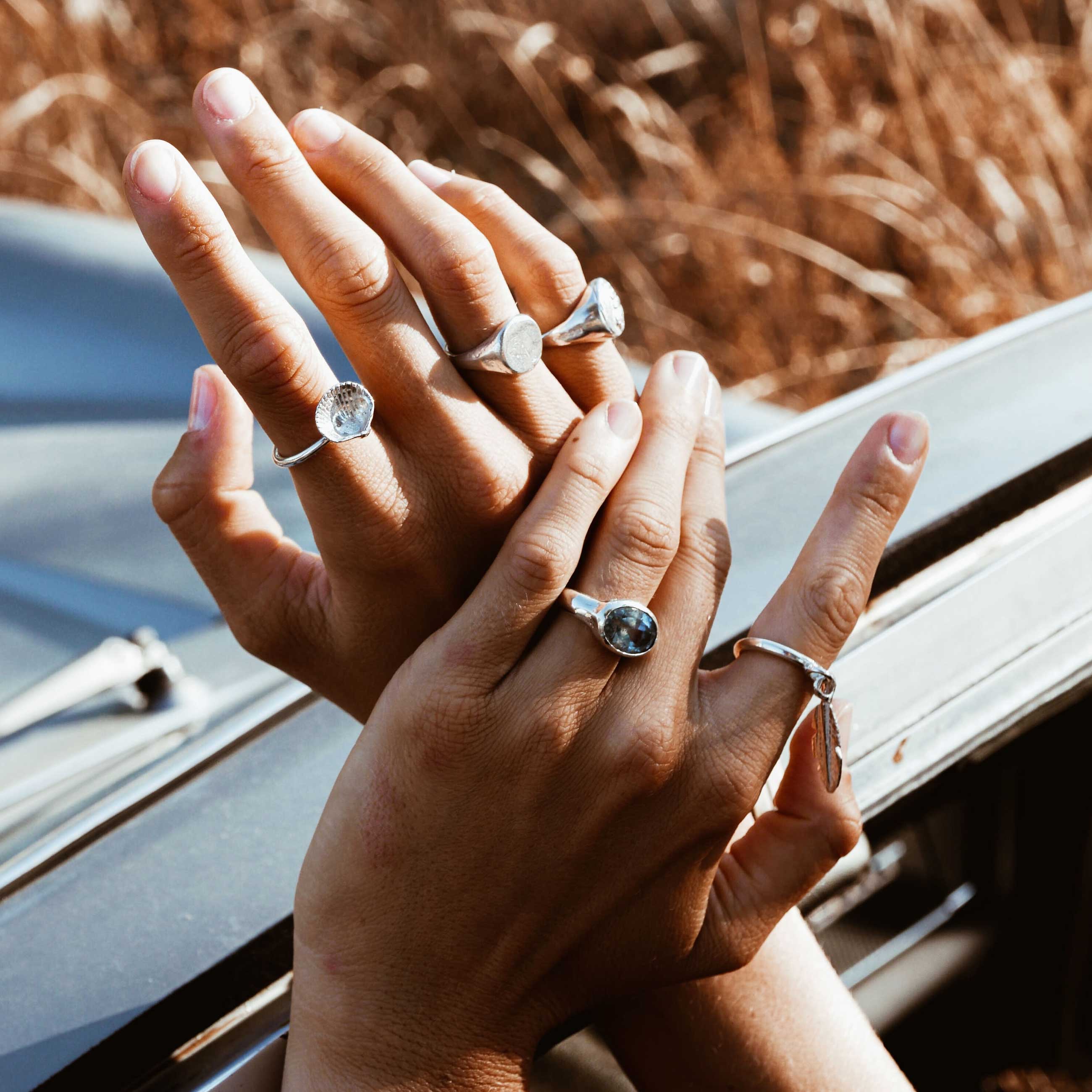 The Love Struck Mini Shell Ring is made using 100% recycled solid sterling silver. Wear alone or stack with other DD bangles to create your own unique look!