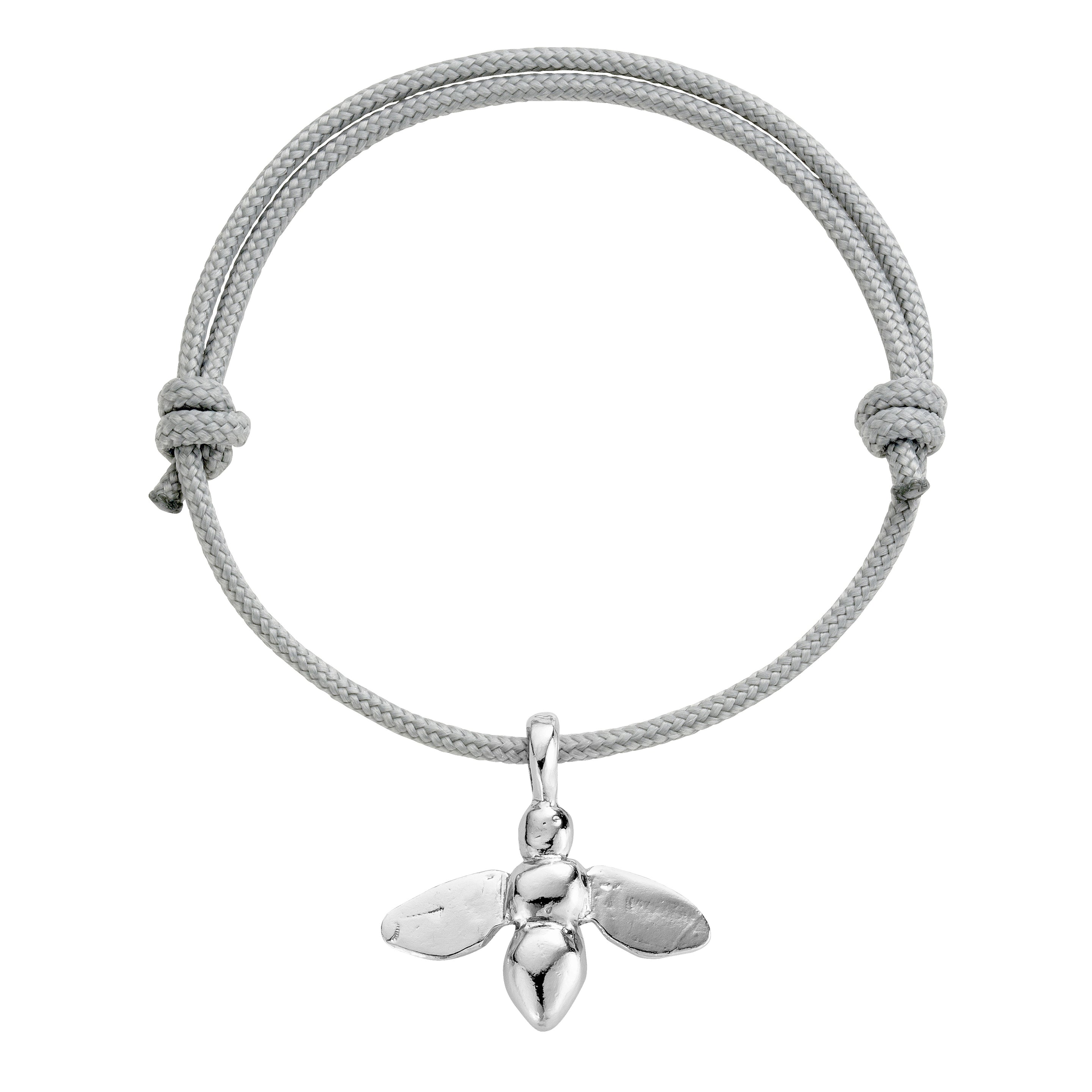 The Honey Bee Charm is made using 100% recycled solid sterling silver & is threaded onto an adjustable sailing rope. One of our most popular & easy to wear pieces, this sailing rope comes in three colours: black, pink or grey.