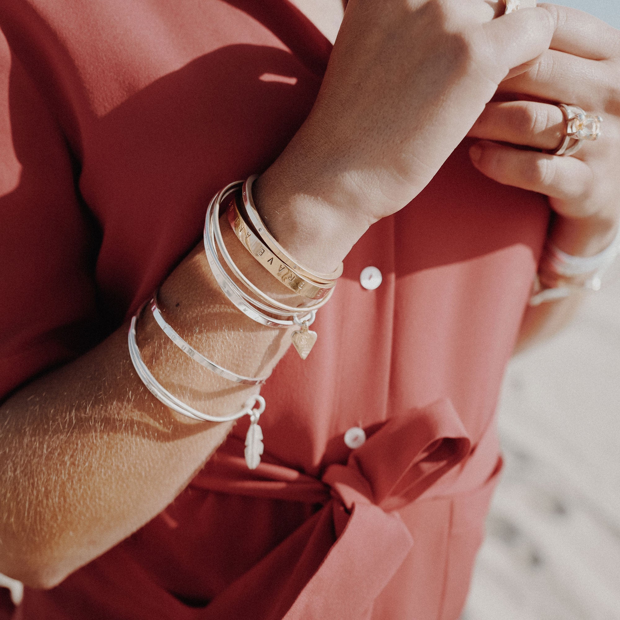 The Medium Feather Bangle is made using 100% recycled solid sterling. Wear alone or stack with other DD bangles to create your own unique look!