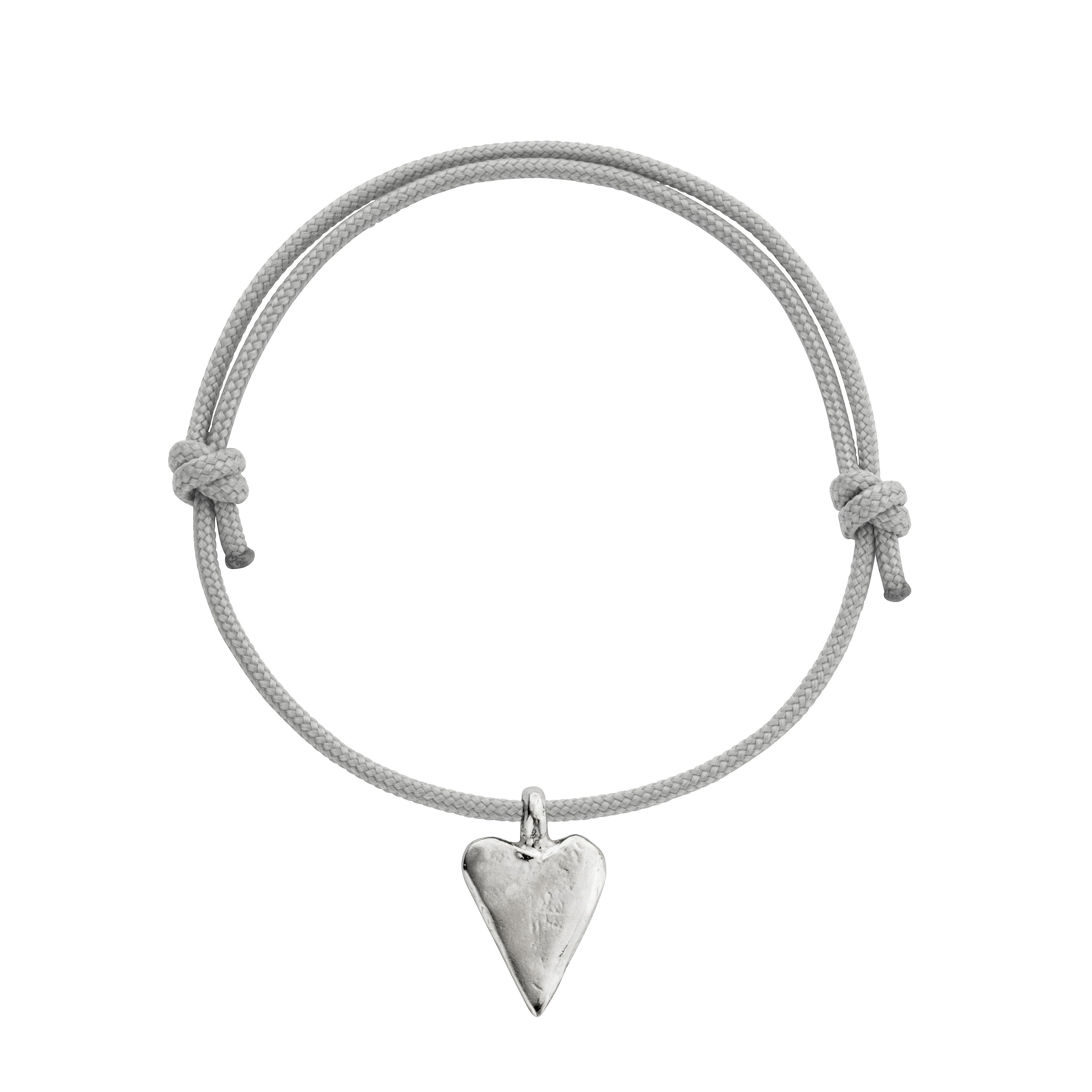 The Medium Heart, made using 100% recycled solid sterling silver, is threaded onto an adjustable sailing rope. One of our most popular & easy to wear pieces, this sailing rope comes in three colours: black, pink or grey.
