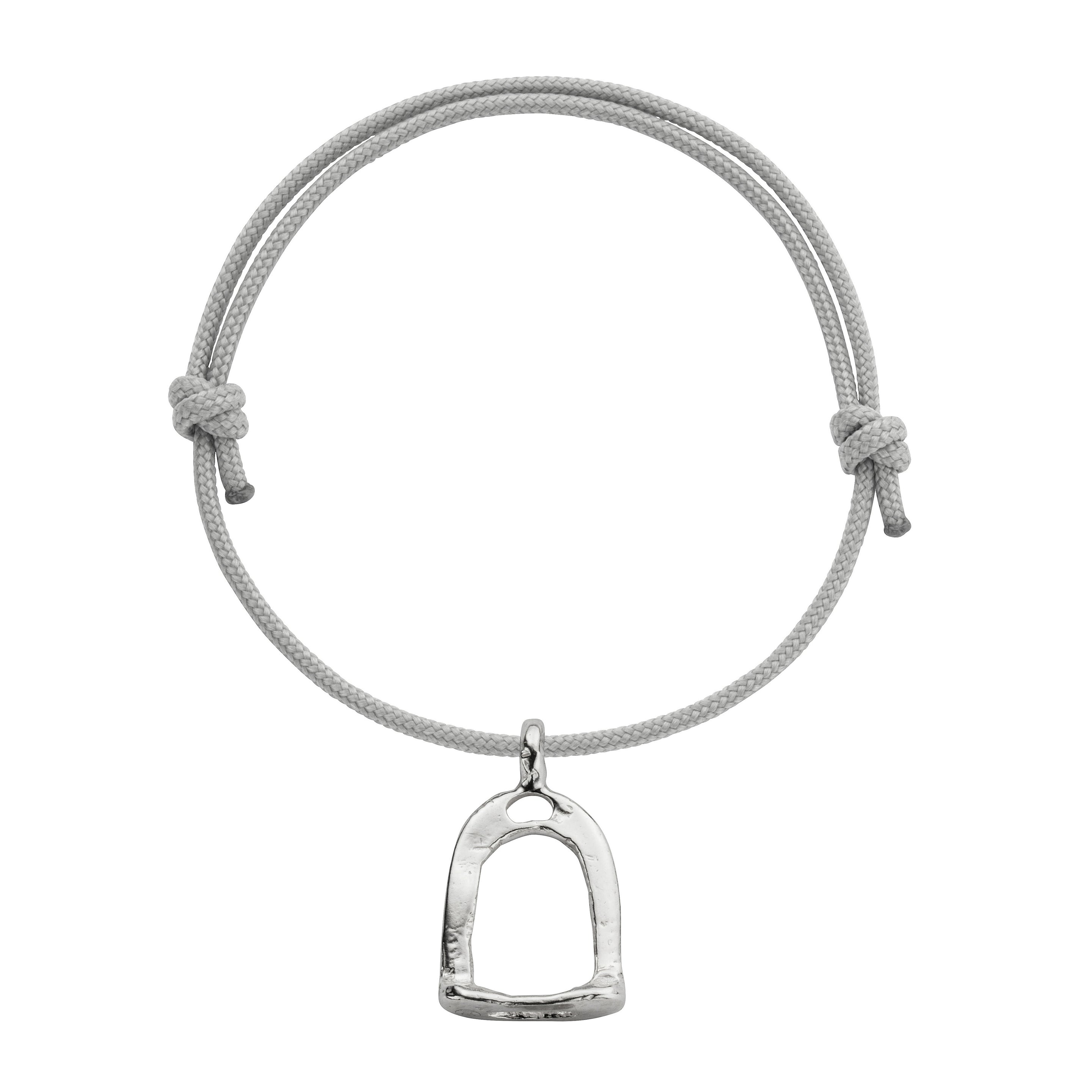 The Original Medium Stirrup, made using 100% recycled solid sterling silver, is threaded onto an adjustable sailing rope. One of our most popular & easy to wear pieces, this sailing rope comes in three colours: black, pink or grey.