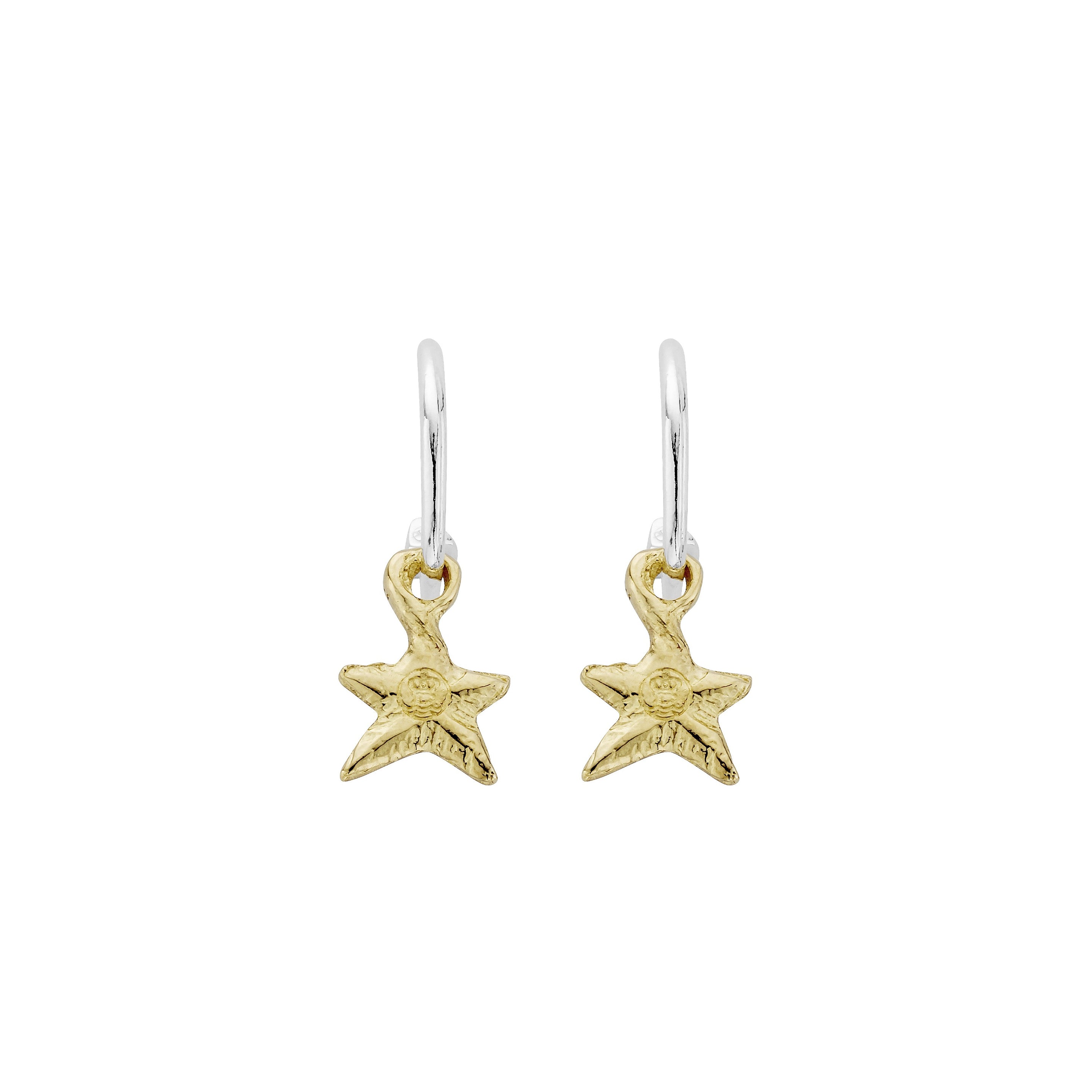 The Mini Star Cupid Hoops are made using 100% recycled solid sterling silver & 9ct yellow gold, the charm hoops are the perfect finishing touch for any occasion.