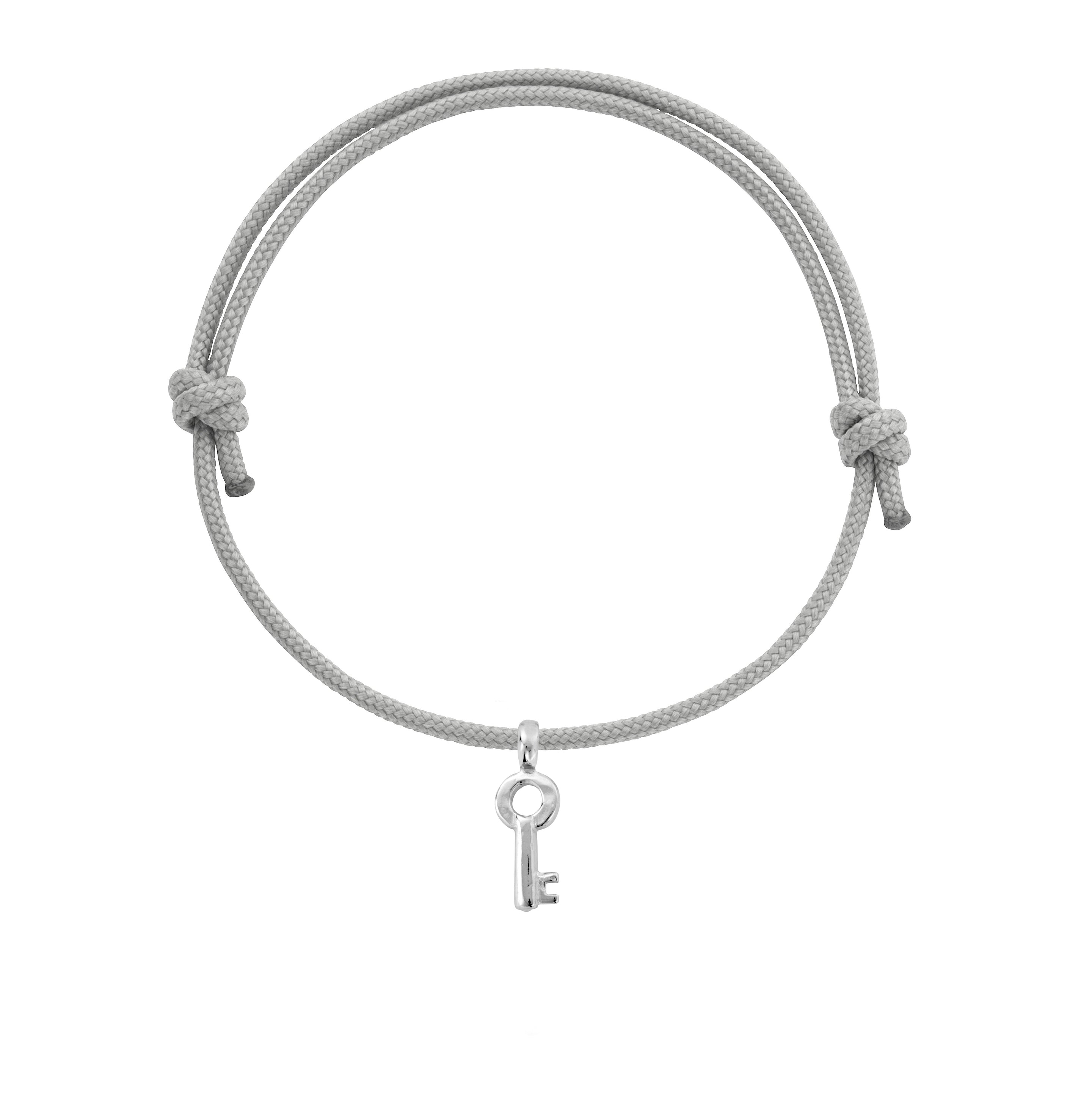 The Mini Dreamer's Key, made using 100% recycled solid sterling silver, is threaded onto an adjustable sailing rope. One of our most popular & easy to wear pieces, this sailing rope comes in three colours: black, pink or grey.