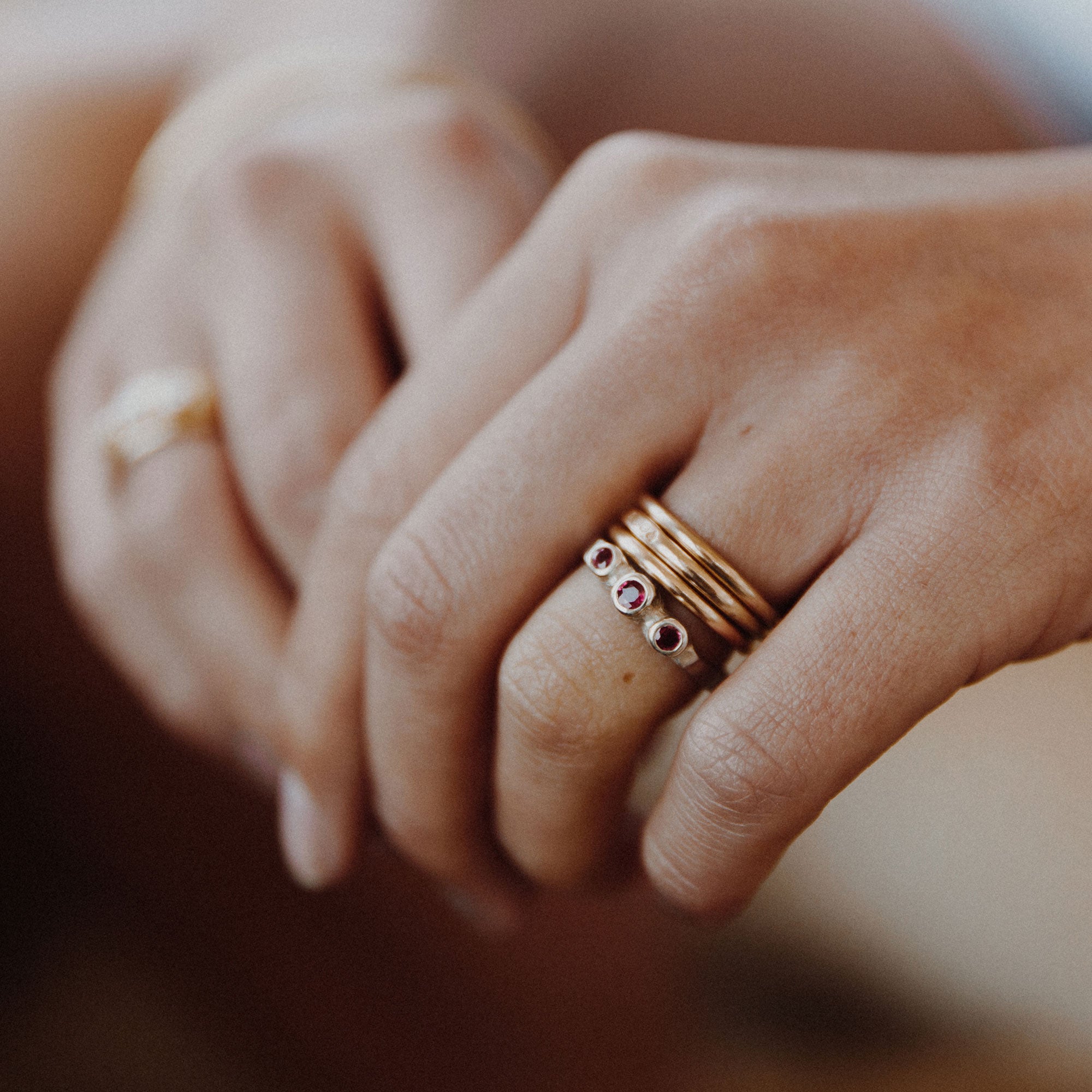The birthstone for July, Ruby was believed to protect from negative energy, remove limitations strengthen courage, joy and leadership qualities. This is a special & wonderfully unique ring, that also captures the symbology associated with trinity and the number 3. It can be worn casually or very dressed up. Stack it with other rings or wear it on it’s own to let it’s beauty stand out.