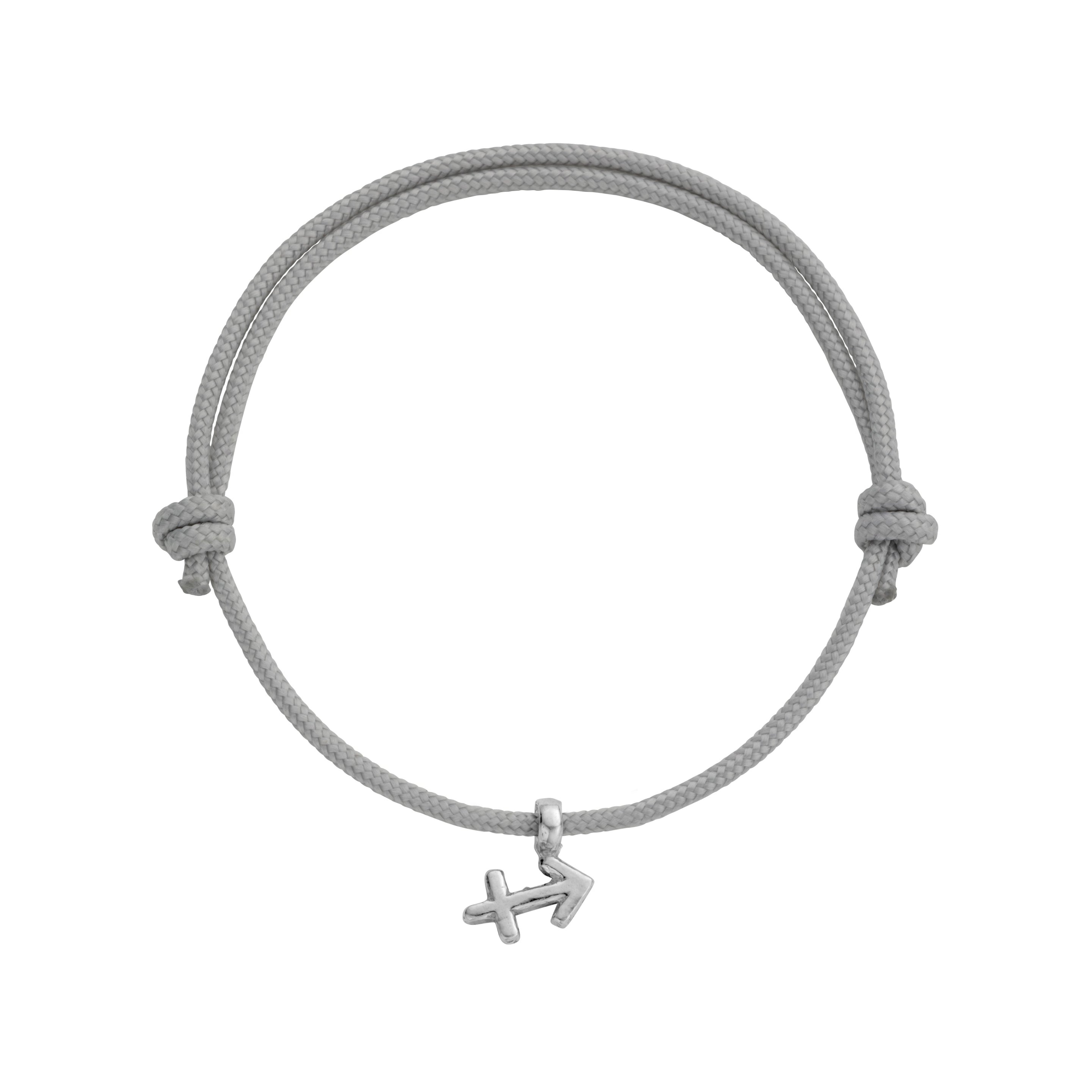 The Sagittarius Mini Horoscope Charm, made using 100% recycled solid sterling silver, is threaded onto an adjustable sailing rope. One of our most popular & easy to wear pieces, this sailing rope comes in three colours: black, pink or grey.