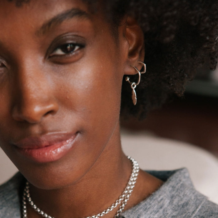 The Tiny Cupid Hoops are made using 100% recycled sterling silver. These versatile earrings can be worn alone or hooked up with our Baby Earring Charms.
