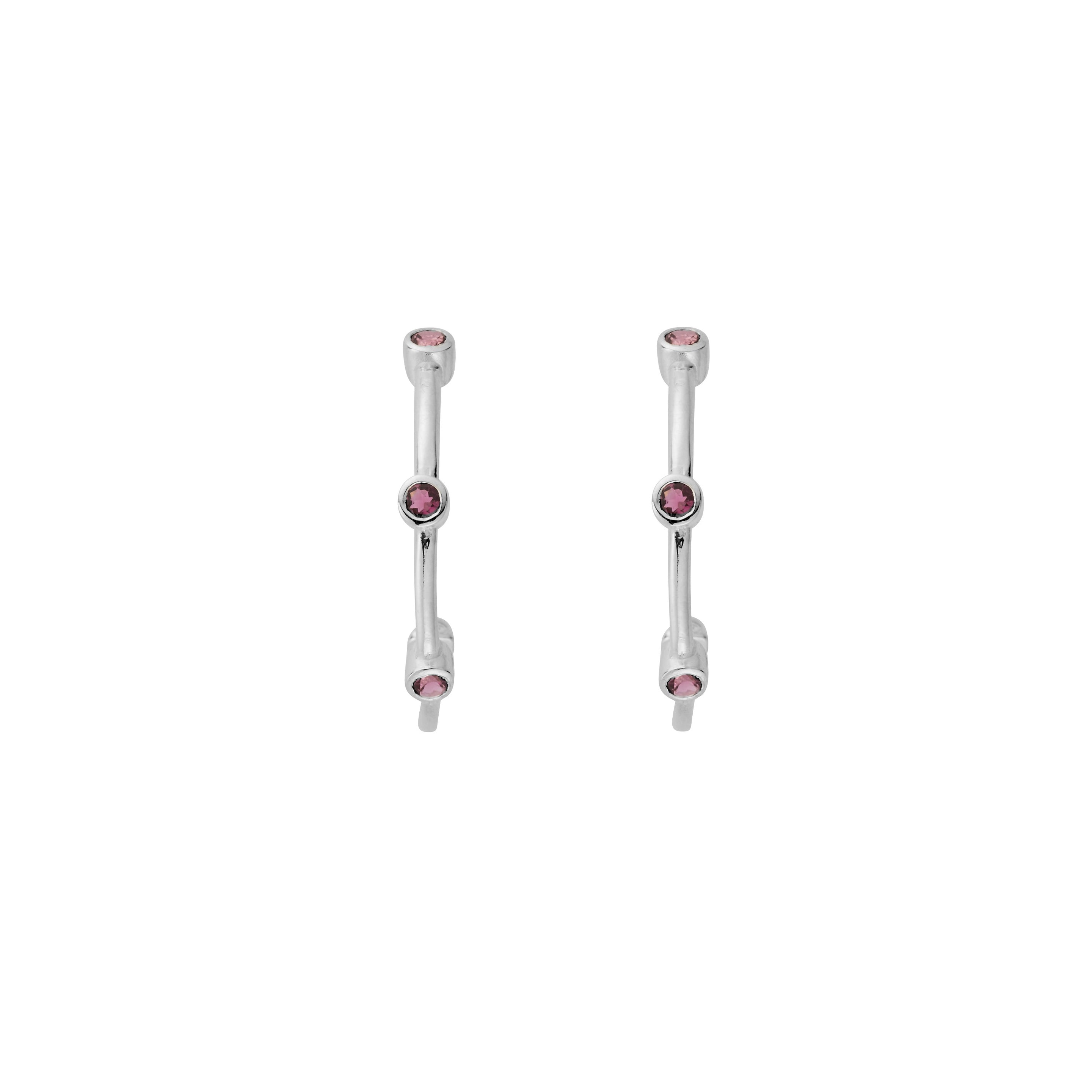 The beautiful Maxi Midnight Hoop Earrings are the latest addition to Daniella's collection. Made using 100% recycled silver & set with three pink tourmalines.