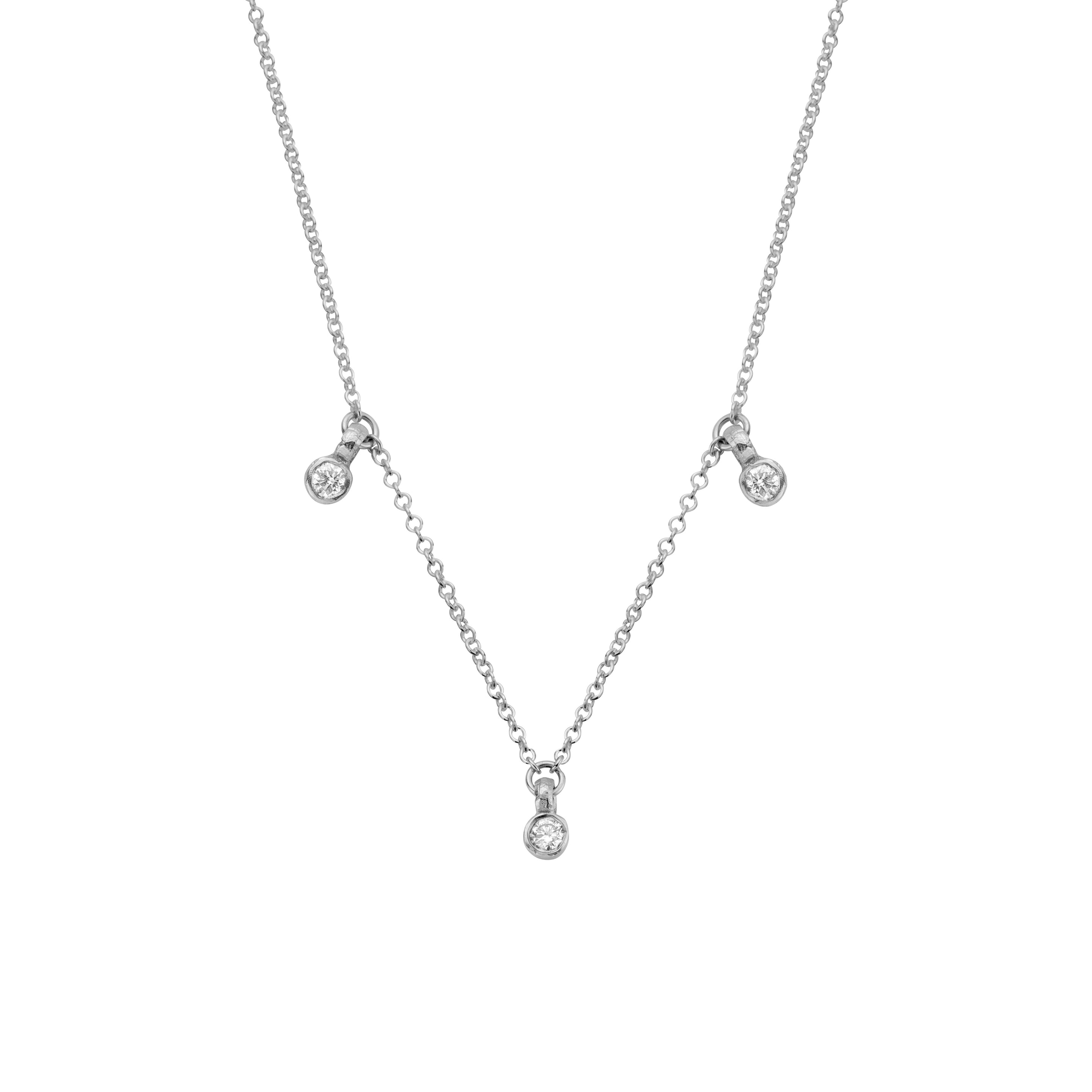 The Trio Diamond Necklace is made using 100% recycled solid sterling silver & set with three sparkly diamonds. Wear alone or layer with other DD necklaces to create your own unique look!