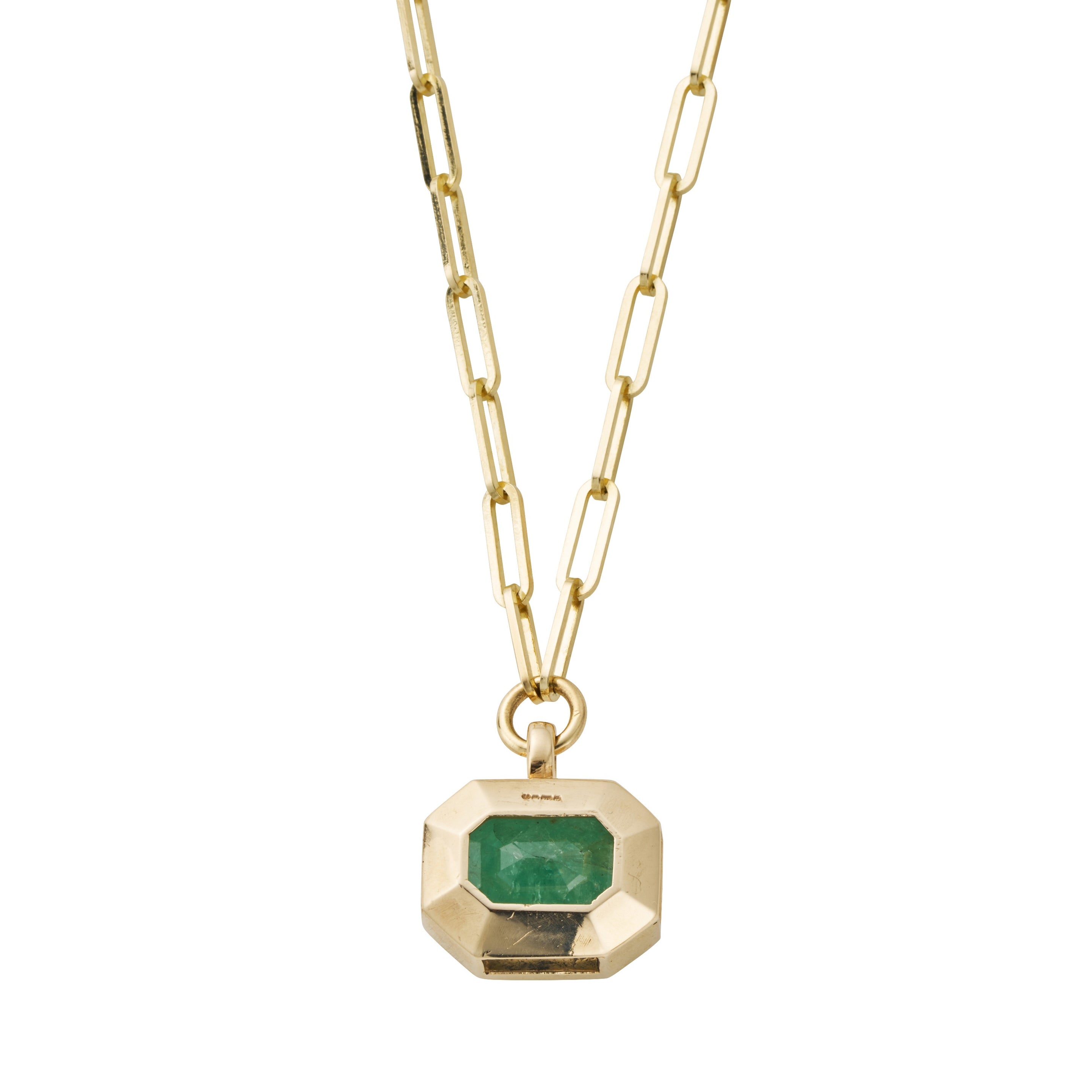 An 18.82ct octagon emerald has been lovingly hand set into a 9ct yellow gold setting to create this unique design. Named Verity, translating to "truth", many believed emeralds had the ability to reveal truth and foresee the future.