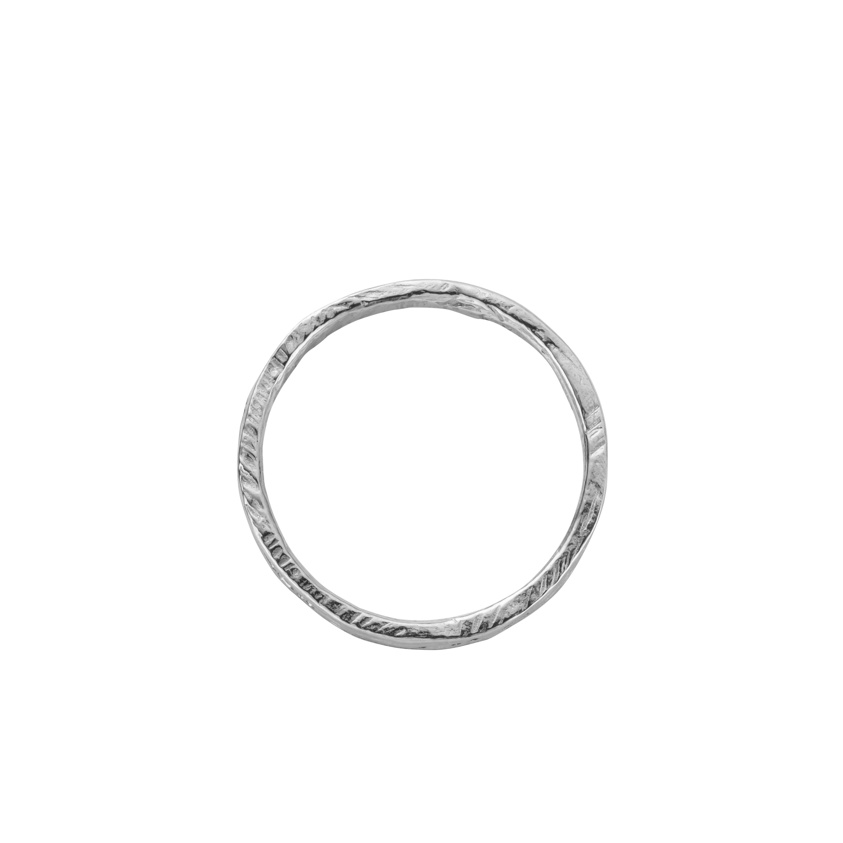 Handcrafted in England using 100% recycled 9ct white gold, the Ladies' White Gold Mini Posey Ring speaks to classic aesthetics, offering a touch of sophistication that transcends time. Perfect for stacking with other DD rings or to wear on its own for a more understated look, this hand carved design has a beautiful organic texture.