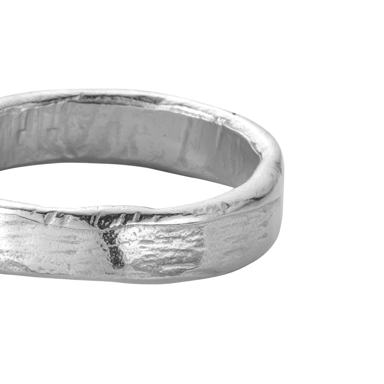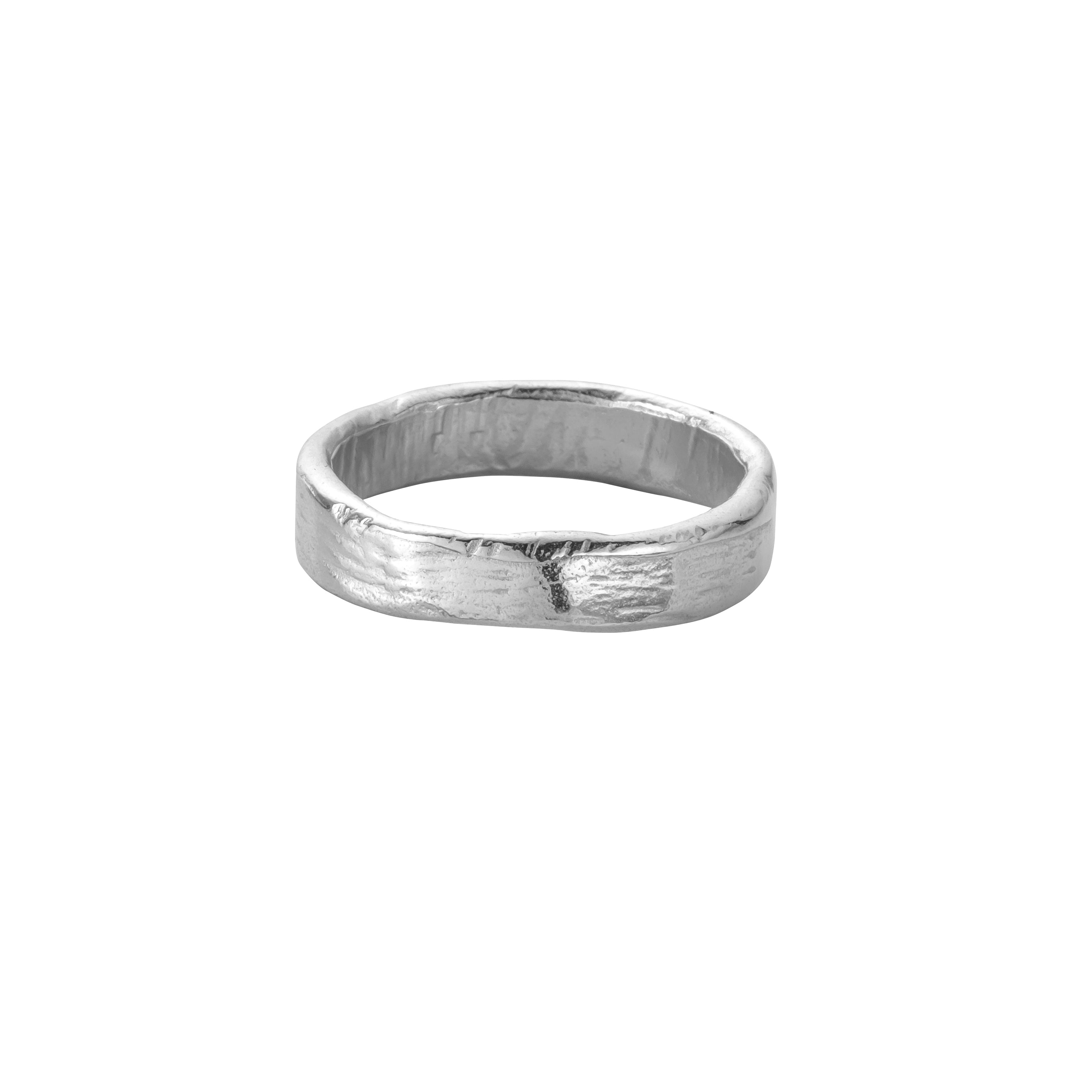 This is a solid White Gold Men's Midi Posey ring which has been hand carved giving it a beautiful organic texture.